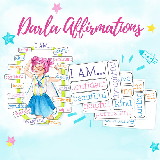 DOWNLOADAn empowering activity that allows your students to fill out the affirmation blanks with words of their choosing. Students can either color in the Darla character or draw themselves.